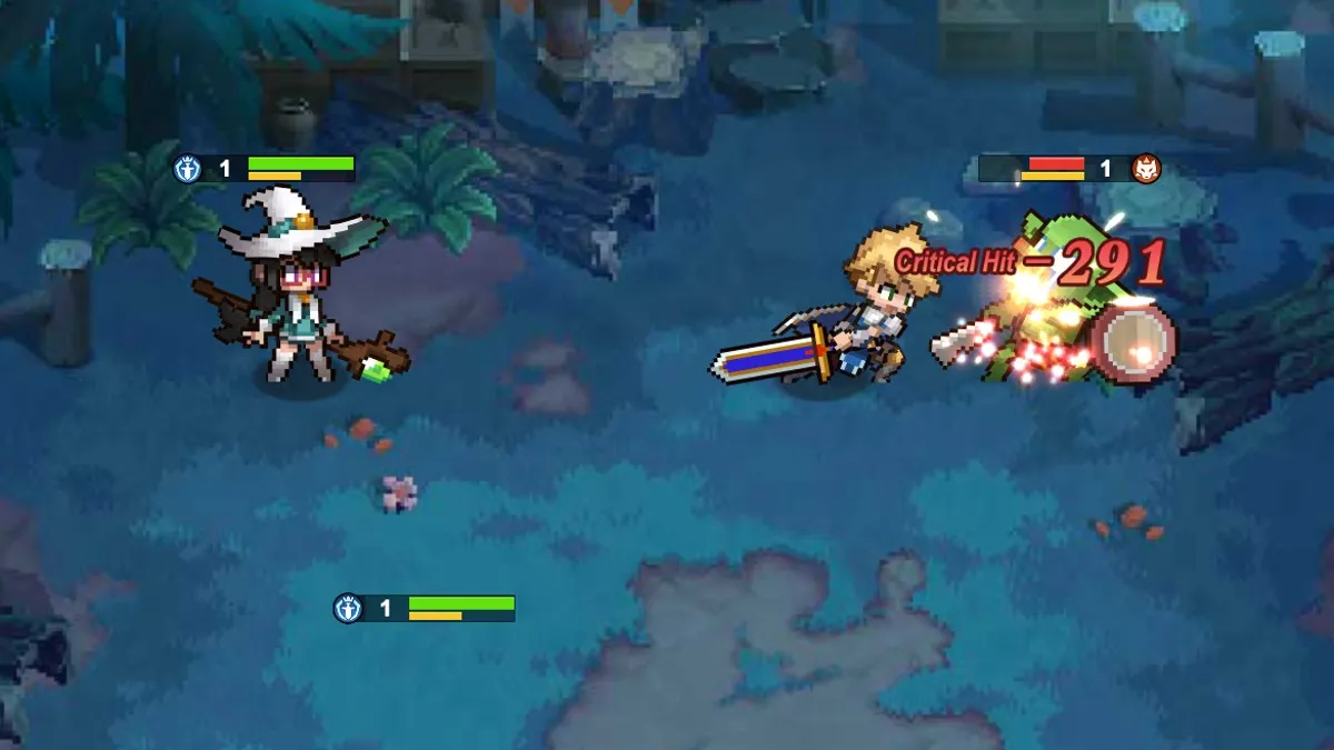 A pixelated RPG where you explore a continent with various story-driven missions, engage in battles, and level up your squad of heroes.